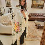 Fairy Grey Based Dupatta With Maroon Flowers Expressive Design