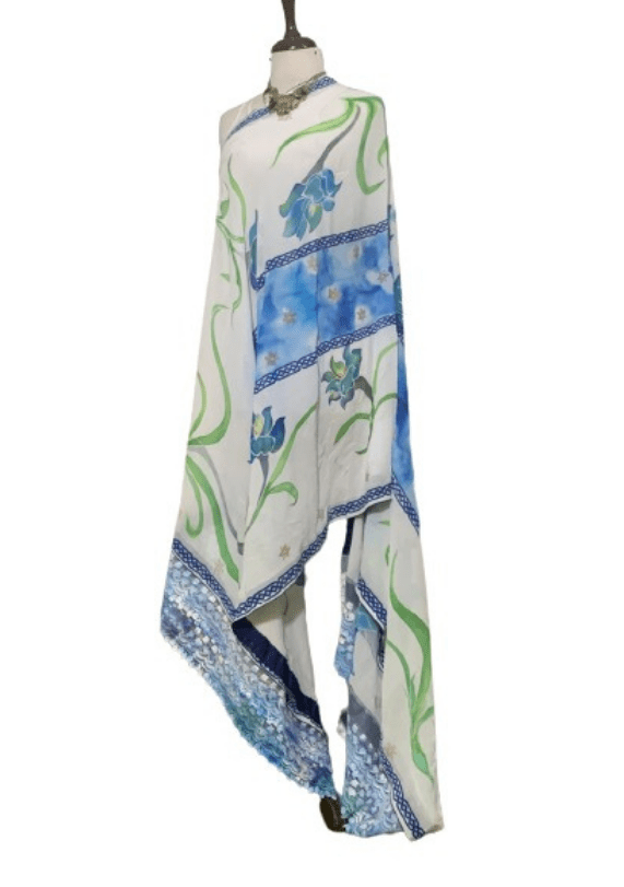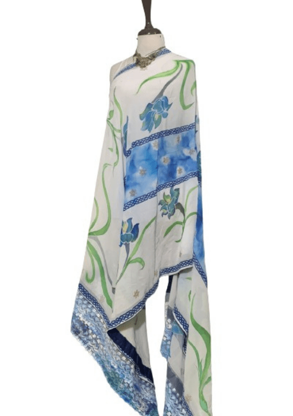 The bloomy blue flowers bloom with long leaves, sky blue, dark blue flowers with yellow middle stamens.