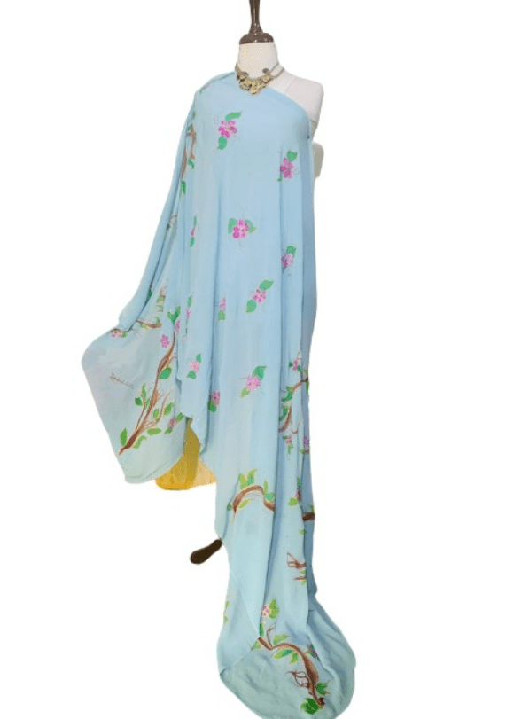 Fabric: pure chiffon Measurements: 2.5 meter Base color: Ice blue You look beautiful in this trendy ice blue dupatta with plain ice blue dress.