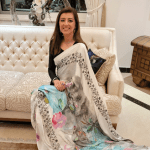 Fairy Grey Based Dupatta With Maroon Flowers Expressive Design